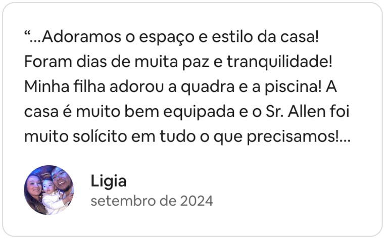 Atendemos clientes do mundo todo e recebemos ótimas avaliações de nossos hóspedes.