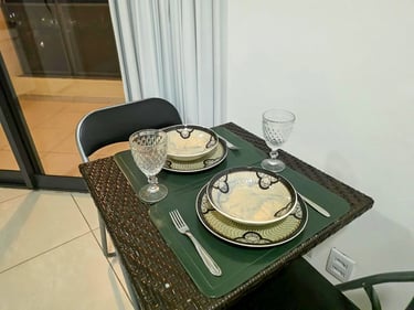 Mesa com 2 cadeiras — ótimo para refeições ou home office