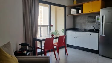 Este charmoso apartamento de 31m², totalmente mobiliado, está localizado na Rua Cunha Gago, em Pinheiros – um endereço moderno e estratégico, a poucos passos da Av. Faria Lima e da estação de metrô Faria Lima.
