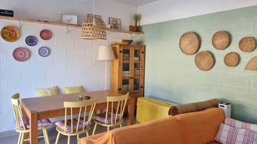 De um lado da piscina vc encontrará uma cozinha totalmente equipada, churrasqueira, banheiro e um quarto com dois sofás cama e um colchão extra. Do outro lado, uma sala com sofá TV e mesa de jantar, banheiro e um quarto com uma cama de casal e uma cama de solteiro. Roupa de cama e toalhas disponíveis.