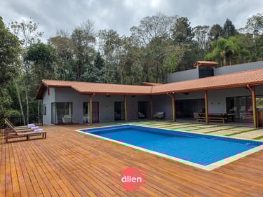 Conforto, requinte e contato com a natureza em um só lugar: 2.500 m² de terreno, piscina, área gourmet e 4 suítes em um dos melhores condomínios de Ibiúna.